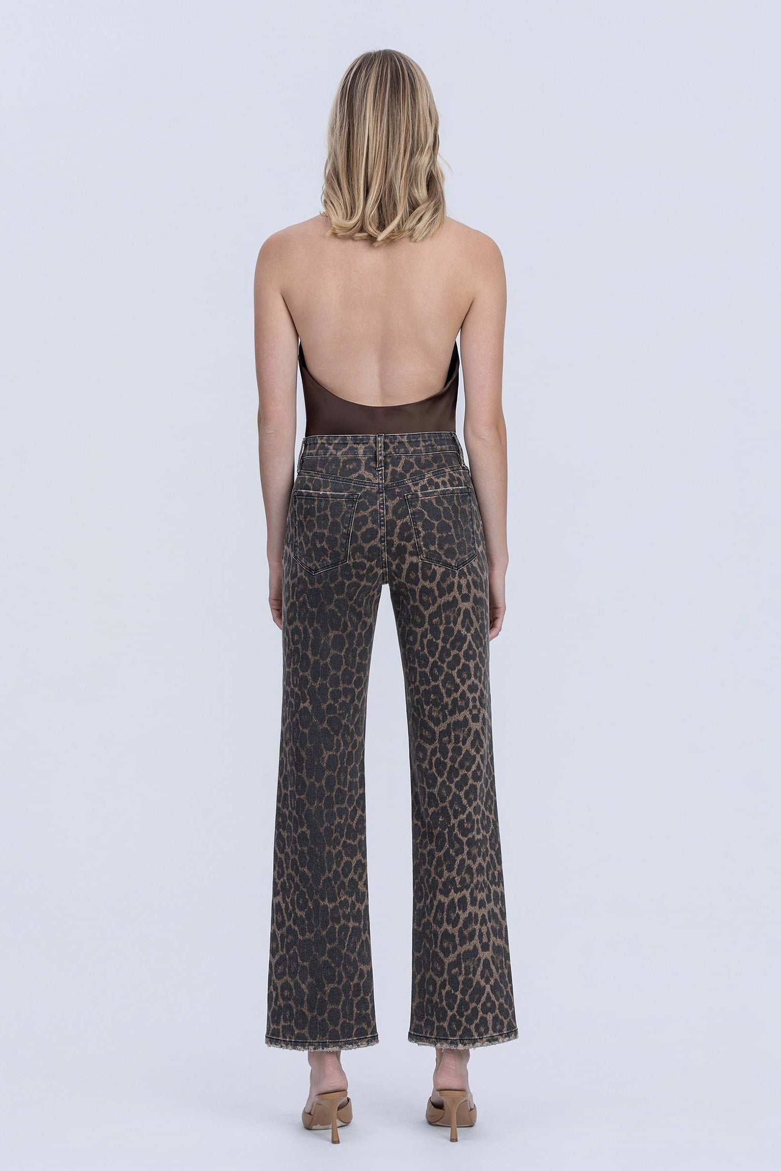 HIGH RISE LEOPARD PRINT SLIM WIDE JEANS