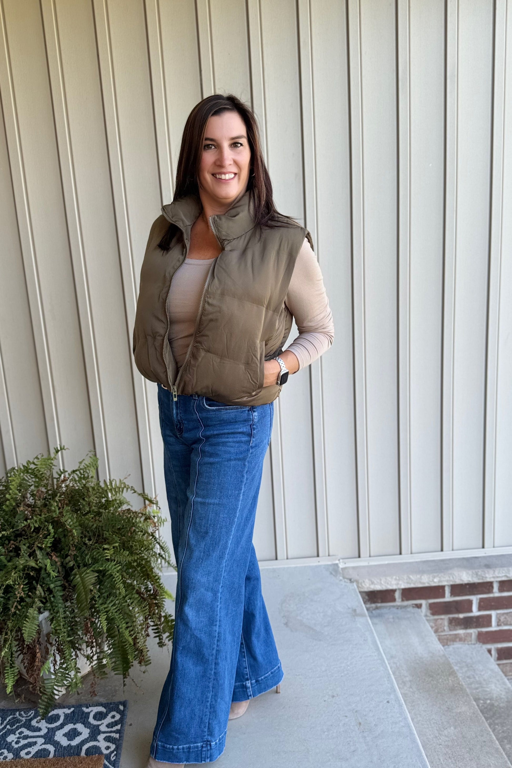 Layer up in effortless style with the Issey Vest in Olive Green. This versatile puffer vest is the perfect blend of function and fashion, designed to keep you warm without the bulk. Featuring a timeless olive green hue, it’s a staple piece you’ll reach for season after season. Side pockets add practicality for keeping your hands cozy or storing small essentials.